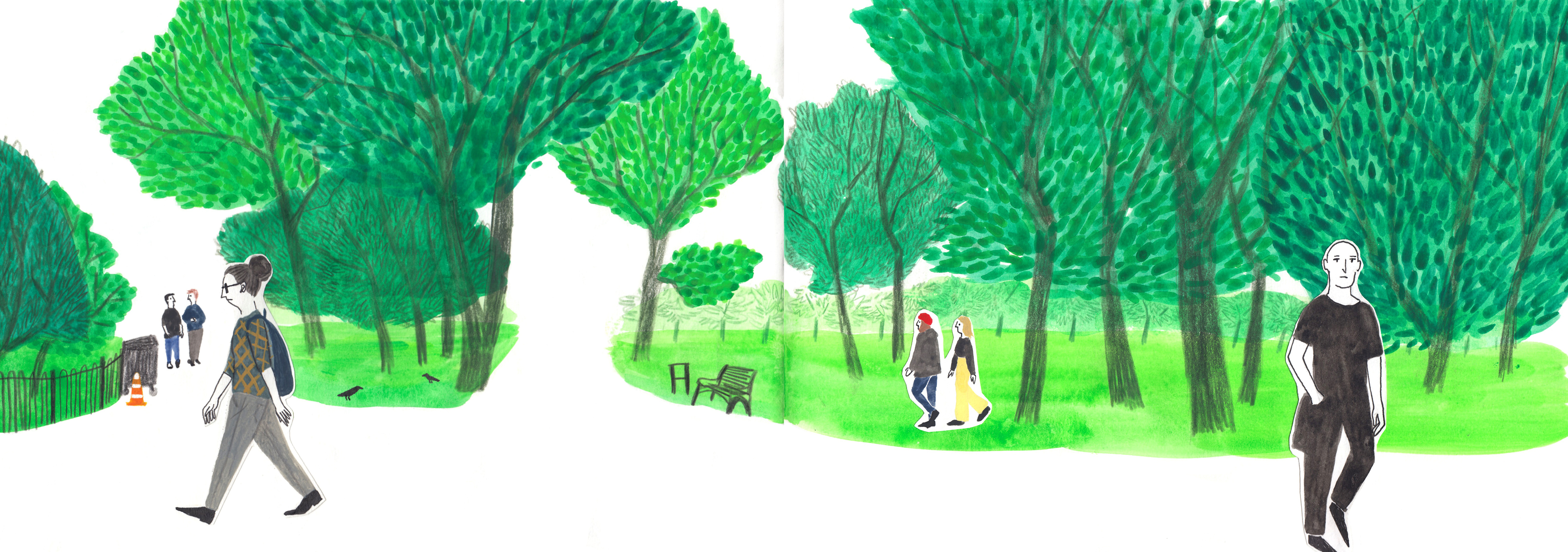Personal sketchbook researching the history of the Meadows in Edinburgh.