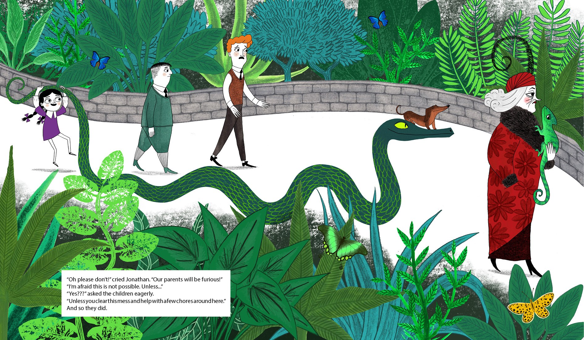 Picturebook project about a group of children befriending an old lady and exploring her greenhouse.